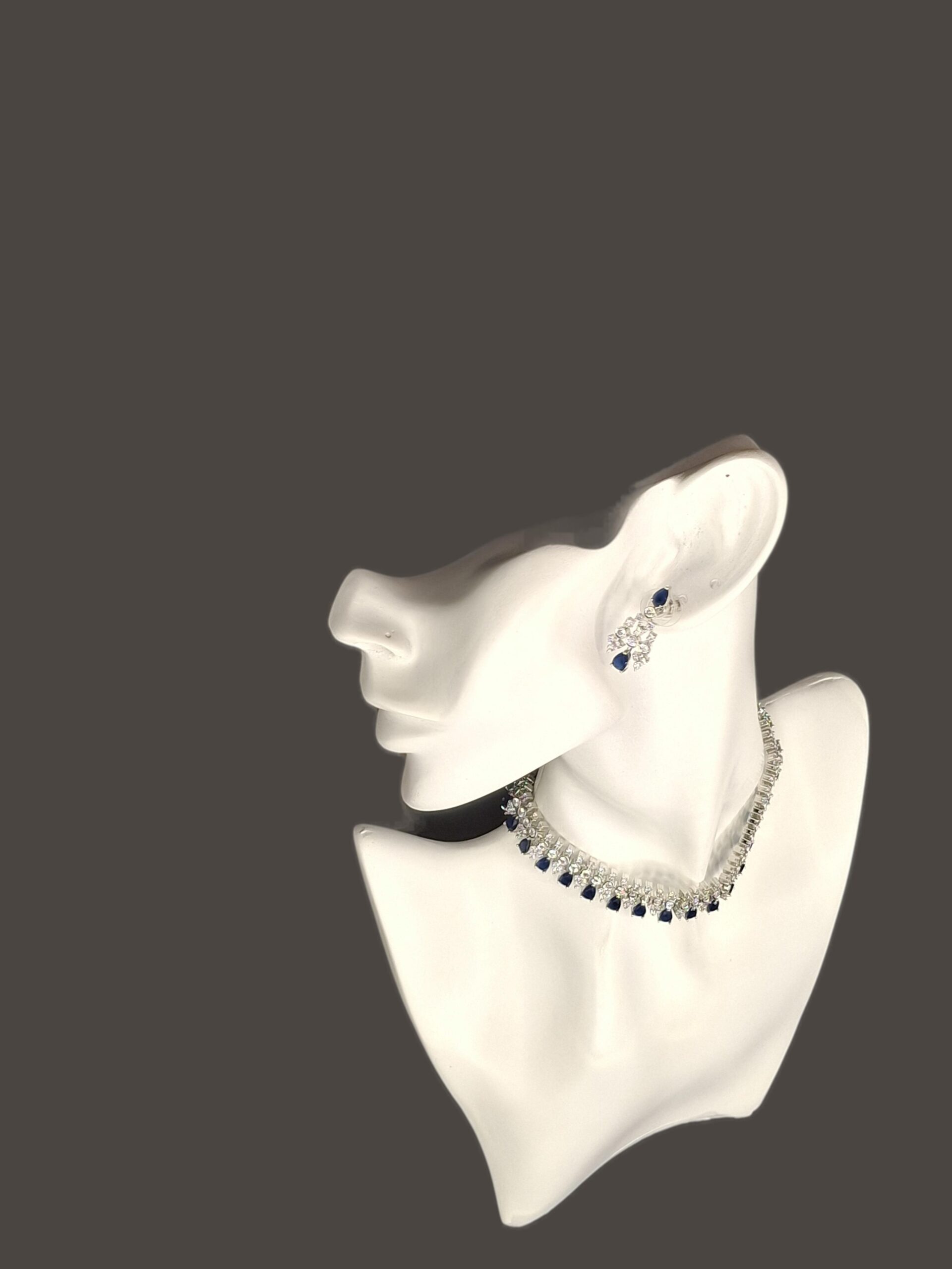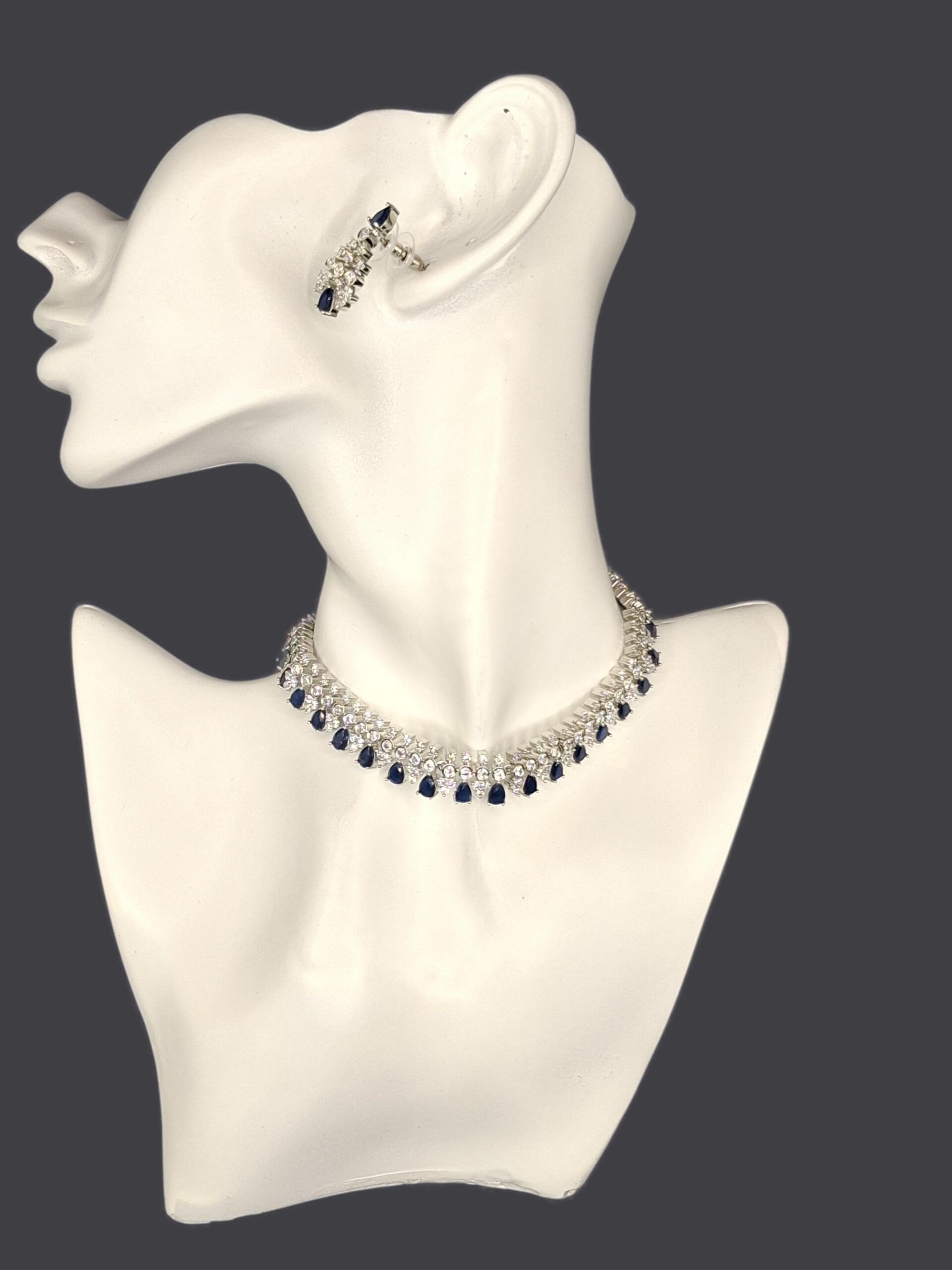 This is one of the finest items in jewellery of AD. It’s rich look yet simple design. It’s on silver polish with navy blue coloured AD stones.